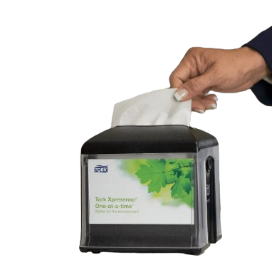 La servilletera Xpressnap® cuenta con un dispensado de Una-a-la-Vez que ayuda a la reducción en el desperdicio de servilletas hasta en un 25%.